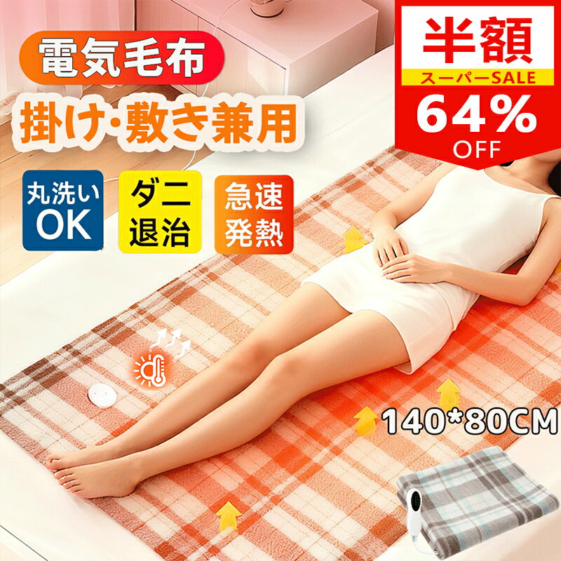 限定SALE 電気毛布 敷き毛布 140*80cm 電気敷き毛布 洗濯可 シングル ひざ掛け 電気ブランケット 足元 フランネル 温度調節 タイマー 節電 ダニ退治 寒さ対策