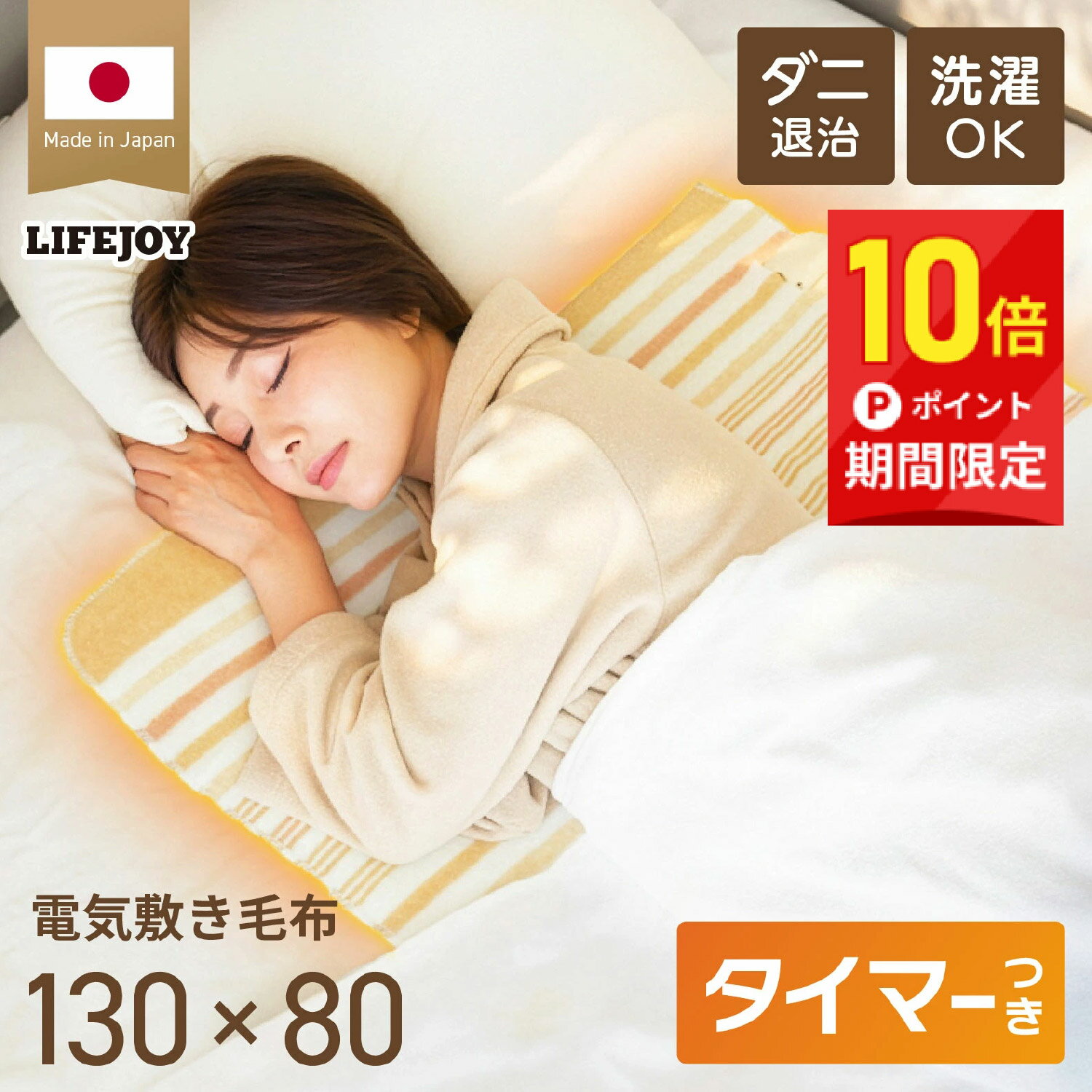 【公式】ライフジョイ 日本製 電気毛布 敷き毛布 130cm×80cm 2色 シングル 洗える ダニ退治 温度調節 電気敷き毛布 ブラウン オレンジ JBS401D JBS401B