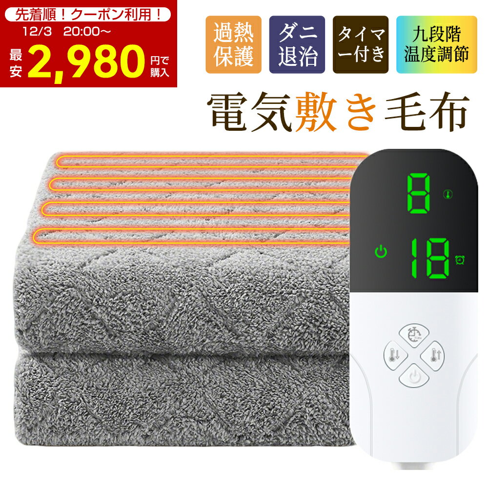 「クーポンで2980円」電気毛布 敷き毛布 3段階温度調節 電気ブランケット 電子ブランケット 掛け毛布 USB 掛け敷き兼用 タイマー機能 丸洗い 省エネ 防寒対策