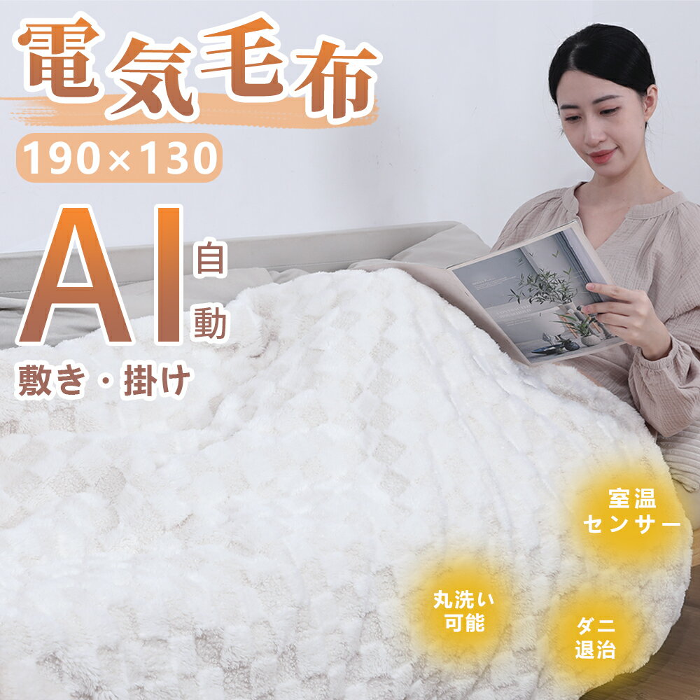 \60%OFFクーポン/ 電気毛布 ふわとろ毛布 AIブランケット 190×130cm 室温センサー スマート温度調整 洗濯ネット付 掛け敷き 洗える 1-12時間 タイマー付 9段階温度 抗菌防臭 ダニ退治 自動電源オフ 丸洗い 電気ひざ掛け 肩掛け 毛布 電気ブランケット 掛けもこもこ毛布