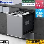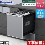 工事費込みセット フロントオープンタイプ 食器洗い乾燥機 ディープタイプ パナソニック NP-45EF1WPE ドアフル面材型 操作部:鏡面ブラック