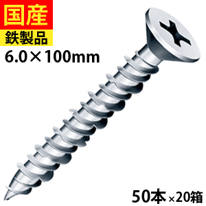 【初回購入3%OFFクーポン】 コンクリートビス コンクリート ビス ネジ レンガ ブロック モルタル 硬質モルタル シルバー DIY Pレスアンカー Pレス プラグ不要 サラ頭 シルバー 6×100 50本×20箱 セントラルファスナー 送料無料