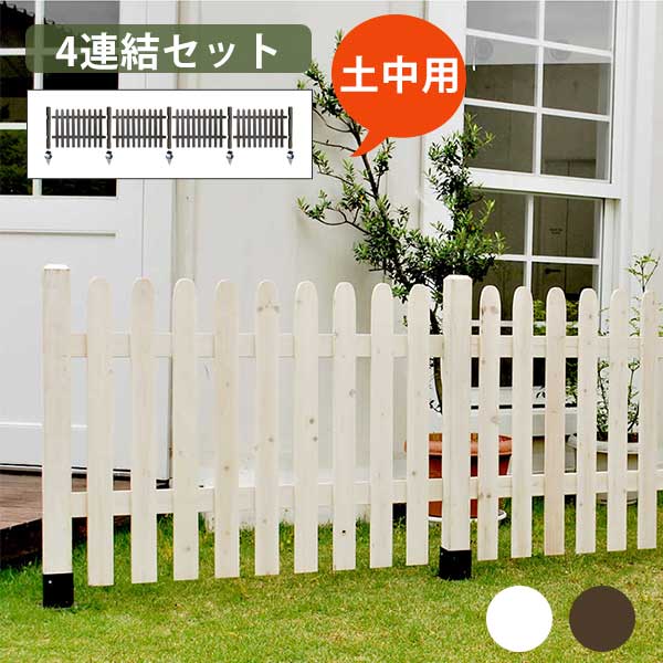 【5日★特別★10%OFFクーポン】 カントリー風のお庭に 木製フェンス 4連結セット(土中用) ピケットフェンス ガーデンフェンス 目隠し おしゃれ ホワイト 白 ブラウン ウッドフェンス 縦 自立 埋め込み式 杭 DIY キット アンカー ねじ止め