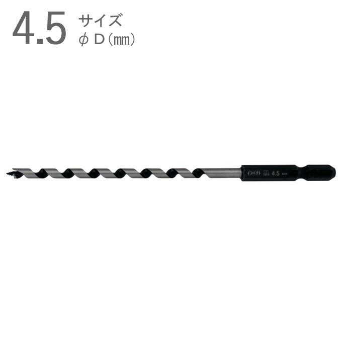 【10%OFF!スーパーSALE特価】 ドリルビット 木工ドリル 木工錐 インパクトビット ミドルタイプ 4.5mm 全長140×ネジ丈90×軸径6.35mm 六角軸 普通鋼 片刃片爪タイプ 1本単位 一般木材 インパクトドライバー対応 ドリルドライバー 研磨可能 スターエム 小林 内装工事 DIY