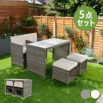 【収納できる】ガーデンファニチャー 5点 ガーデン クッション付き ラタン調 家具 撥水加工 アウトドア ソファーセット ホテル カフェ ベランダ 高級 おしゃれ