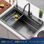 シンク ステンレス 流し台 大判 DIY キッチン ステンレス製 ナノコーティング 黒色 油対策 耐摩耗 手入れやすい 厚手 台所 ゴミ受け 蛇口 国内発送