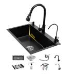 【4点商品セット】 キッチンシンク 650*450mm ステンレス シンク 黒い 流し台 家庭用 大容量 手作り 水切りカゴ付き キッチン DIY 台所 リフォーム (蛇口なし)