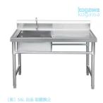 流し台 ステンレス製 蛇口水栓付き 幅120cm【期間限定価格】 屋外 キッチン ガーデンシンク 錆びず 簡単取付 工場 農園でも (作業台付HI-125L/R)