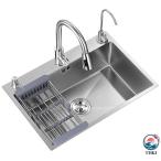 ドロップインまたはアンダーマウントシングルボウルキッチンシンク、プルダウン蛇口ブラックドロップインバーシンク304ステンレス鋼