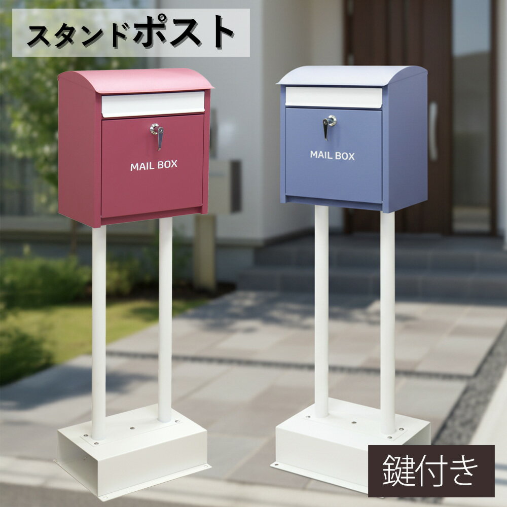 ☆全品10%OFFクーポン スタンドポスト 郵便ポスト 郵便受け 置き型 鍵付き 大容量 おしゃれ 北欧風 シンプルモダン シンプル 玄関ポスト 戸建て用 新聞受け メールボックス 防雨 盗難防止 新居 新築 一軒家 アパート ブルー パープル ピンク