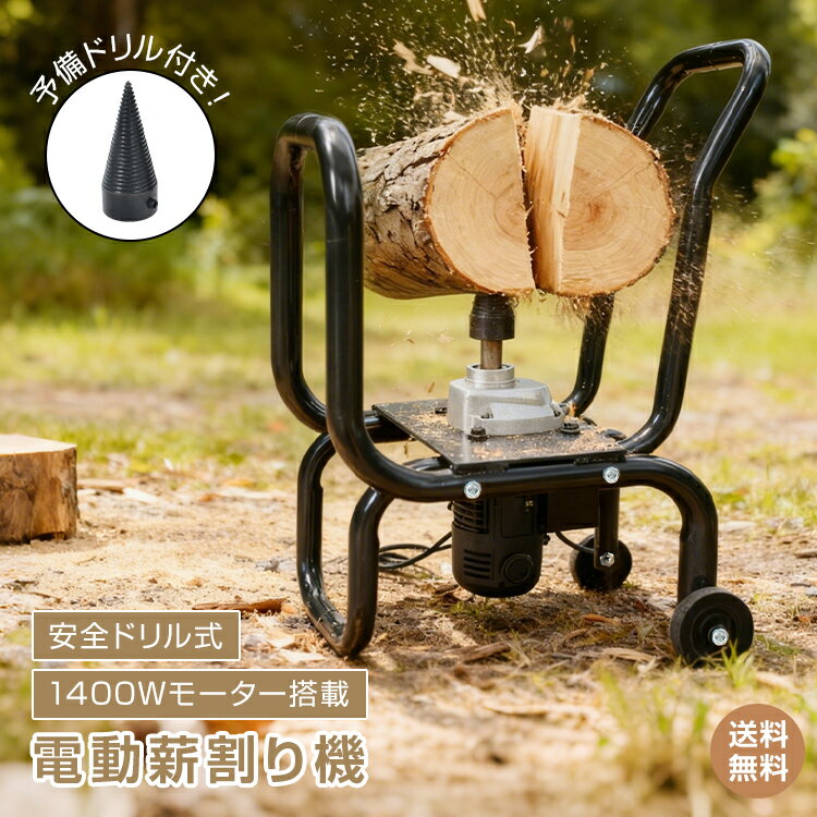 \スパセ10%OFFクーポン/【送料無料】薪割り機 電動 ドリル 薪割り 安全 予備ドリル付き 頑丈 家庭用 コンセント 庭 ガレージ コンパクト 軽量 アウトドア キャンプ ホイール タイヤ 強力モーター 1400W 簡単操作 手軽 初心者 od663