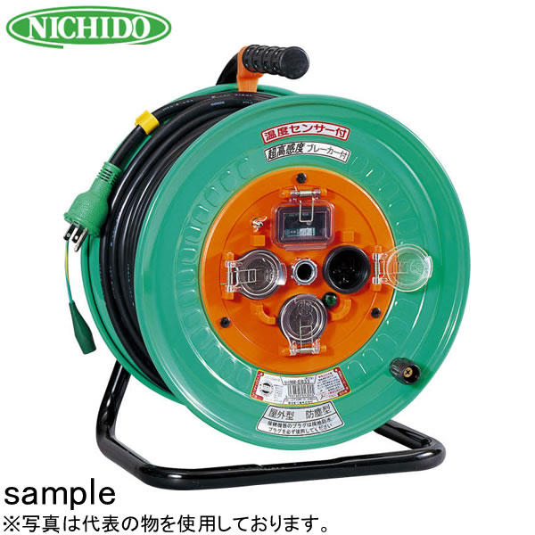 日動工業 30mコードリール 100V超高感度ブレーカー付電工ドラム(屋外用)防雨型 NWH-EK33 アース付(過負荷漏電保護兼用) コンセント:3口