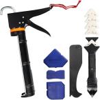 手動式コーキングガンセット 仕上げツール付属 軽量 初心者 リフォーム DIY セルフメンテナンス 溝埋め 標準型 (ブラック)