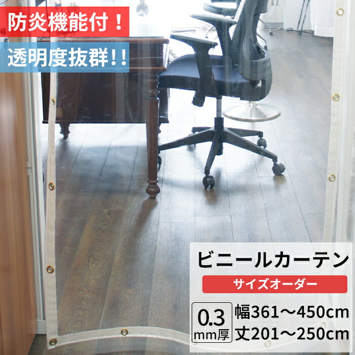 [15日限定10%OFFクーポンあり]ビニールカーテン 透明 防炎 0.3mm厚 幅361〜450cm 丈201〜250cm PVC 丈夫 間仕切り 省エネ 節電 防水 防塵 店舗 ベランダ ビニールシート ビニール カーテン サイズオーダー 【FT11】 JQ