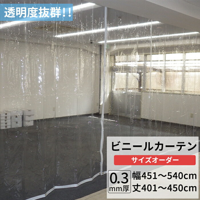 [15日限定10%OFFクーポンあり]ビニールカーテン 透明 0.3mm厚 幅451〜540cm 丈401〜450cm ビニール カーテン 透明ビニール ビニールシート オーダー薄手 間仕切り 省エネ 節電 防寒 防塵 防虫 会社 事務所 お風呂 ベランダ サイズオーダー 【TT31】 JQ