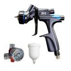 (K.V)DEVILBISS デビルビス スプレーガン DV1-U-000-13-B+ ベース用中低圧 重力式 塗料カップ・手元圧力計付セット