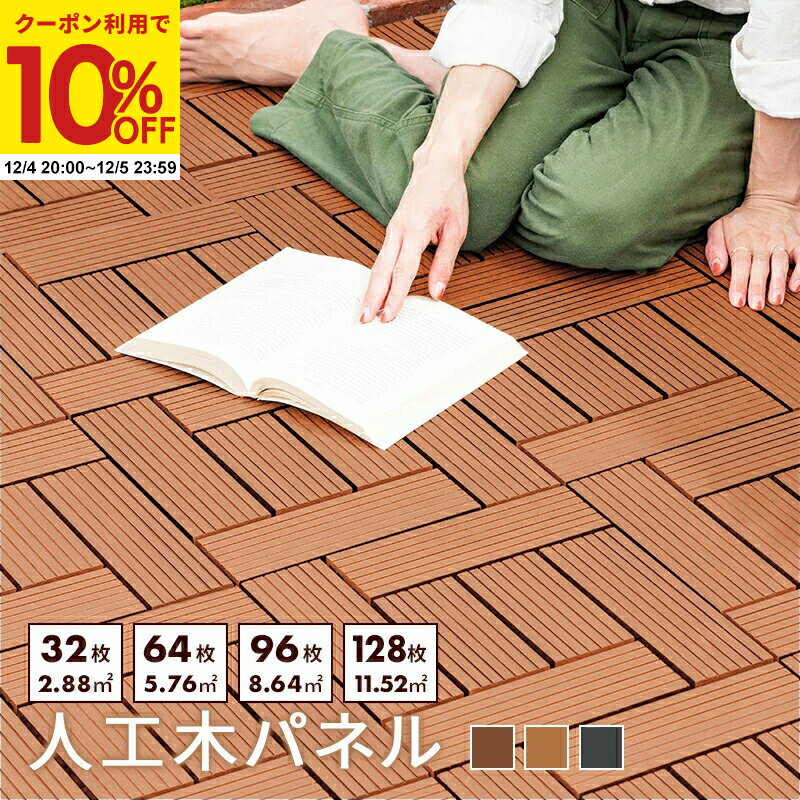【クーポンで10%OFF★12/4 20:00〜12/5 23:59】 ウッドパネル 32枚 64枚 96枚 128枚 幅30 人工木 長持ち 天然木粉 ウッドタイル タイル ジョイントマット ベランダ ガーデニング ガーデン DIY セット デッキ 正方形 屋外 ブラウン グレー ライトブラウン