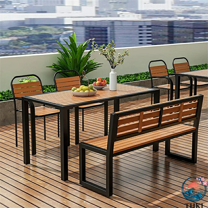 【全品2点で5%OFF】ガーデンテーブル・チェア 雨ざらし 屋外 庭園テーブルセット 5点セットプラ スチック木材 防水・防湿 滑らかで手を傷つけません さまざまな椅子のスタイル 保管が簡単 バルコニー、キャンプ、ストリートなどに適しています お手入れ簡単