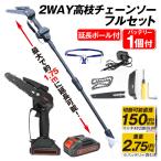 チェーンソー 2WAY 充電式 高枝チェーンソー 1個 電動チェーンソー バッテリー付 延長ポール付 家庭用 強力 片手 軽量 枝切り 伐採 木工切断 剪定 国華園 爆買