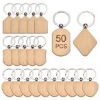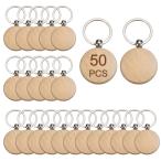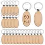 uxcell 木製キーホルダーブランク 40mm 木彫り ブランクキーチェーンタグ DIYクラフト用 50個
