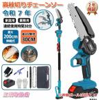 高枝チェーンソー 充電式 電動 バッテリー互換 高枝切り 6インチ 小型 110-200cm伸縮可能 コードレス 長さ調節 軽量 女性 家庭用 高速切断 木工切断