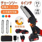 チェーンソー 充電式 自動給油 6インチ 大容量バッテリー2個 コードレス 小型チェンソー 片手 軽量 強力 木工切断 農業 PSE認証済