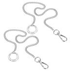 uxcell PATIKIL 財布チェーン キーホルダー キーリング留め金付き 400mm 2個 金属クリップ ハンドバッグ 懐中電灯用 シルバー