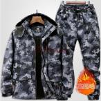セットアップ メンズ 上下セット 裏起毛 迷彩服 作業服 防水 ジャケット アメカジ パンツ アウター 暖かい フード付き 防風 アウトドアウェア ズボン 秋冬