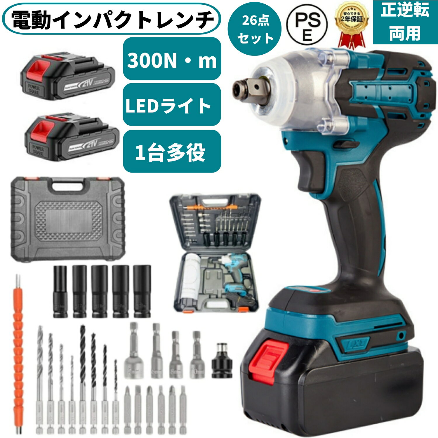 【スーパーSALE限定50%OFF】26点セット 電動インパクトレンチ 充電式 タイヤ交換 コードレスインパクトレンチ ソケット セット 充電式インパクトレンチ 1台多役 多機能 電動インパクトドライバー 小型 ドライバ ブラシレスモーター搭載 電動レンチ ledライト