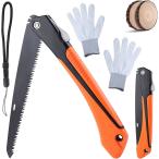 折りたたみ式のこぎり 剪定ノコギリ 折り畳み鋸 手折り鋸 折り畳み手鋸 折込のこぎり 枝切り 三面歯先 ポータブル(オレンジ ブラック)