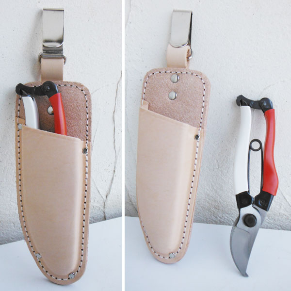 岡恒 剪定鋏ユニーク180mmとハサミケース:型押剪定鋏用革ケースのセット