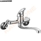 キッチン用 壁付きシングルレバー混合水栓 180° 首振り 泡沫水吐出 ツーホール式 冷温水切替可能 口金 20cm