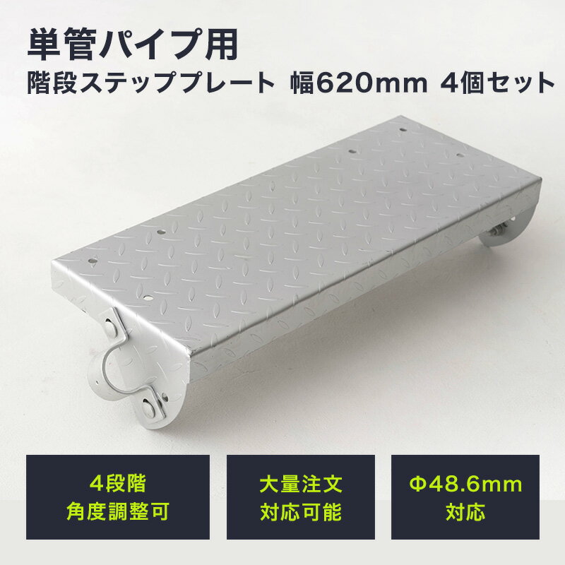 [11%OFF!12/1限定クーポン]単管パイプ ジョイント Φ48.6mm diy おしゃれ ジョイコ タンカンdiy 単管パイプ用階段ステッププレート 幅620mm 4個セット H-N-0