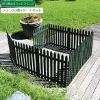 ピケットフェンス 木製 置くだけ フェンス3枚+ゲートセット 扉 ダークグリーン (WF-142FGS-DGN) 折り畳めるウッドフェンス ※北海道+3000円