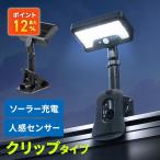 クリップで挟んで使えるソーラー充電式LEDライト 自立スタンドにもなる2WAY仕様 屋外防水 人感センサー対応 EEX-LEDSR17BK