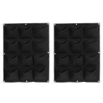 uxcell 縦吊りグローバッグ 12ポケット付き 壁掛け フェルト生地 植木鉢バッグ 植物の容器 庭 家 装飾用 ブラック 2個