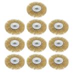uxcell ワイヤーホイールブラシ 76mmベンチ真鍮メッキ 圧着鋼線 6.35mmアーバ穴付き 10個