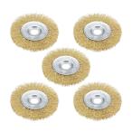 uxcell ワイヤーホイールブラシ 101mmベンチ真鍮メッキ 圧着鋼線 15.8mmアーバ穴付き 5個