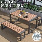 ウッド調 ガーデンファニチャー テーブル&チェアセット 4人掛け ガーデンテーブル チェア 3点 セット(テーブル×1、ベンチ×2) [GTC06Q]