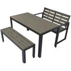 人工木 ガーデンファニチャー 3点セット [長方形テーブル] [ベンチ120 2台] ガーデンテーブル ガーデンベンチ ガーデンチェア aks-28464