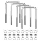 uxcell Uボルト 8セット3-1/16\" x 5-5/16\" - 304ステンレススチールスクエアUボルト ワッシャーとナット付き ボートトレー