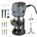 並行輸入 WORKPRO コンパクトルーターキット、6.5アンペアコード付きハンドトリマールーターツール、木工用スロットトリミング用6つの可変速度木製ルーター