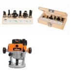 KYOCERA(京セラ) トリマー ATRE60V + トリマービット12本組 セット 【電動ルータ トリマ作業 用 木材 デコラ 合板 角面取り サジ面取り ポーズ ヒョータン 面取り ストレート U溝 ビット オプション 先端 パーツ DIY 電動 おしゃれ おすすめ】