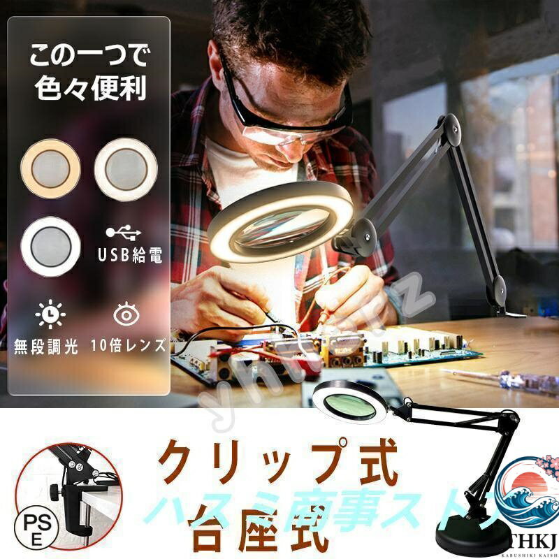 【全品2点で5%OFF】はんだ付け用拡大鏡 作業台 ワニ口クリップ付き拡大鏡 360°角度調整 3倍補助拡大鏡ステーション 回路はんだ付け 時計修理 宝石細工用