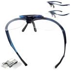 GOKEI 拡大鏡 メガネ ルーペメガネ メガネの上から 跳ね上げ クリップ式 ルーペ 跳ね上げ式 メガネルーペ 拡大鏡メガネ 5点セット ブルーラ