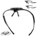 GOKEI ルーペメガネ メガネの上から クリップ式 ルーペ型眼鏡 大きく見える 拡大鏡 跳ね上げ式メガネ 5点セット 細かい作業 ブルーライト