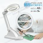 拡大鏡 LED付き スタンドルーペ 卓上ルーペ ルーペライト 5倍拡大 42LED 約90mm ガラスレンズ LED拡大鏡 読書 手芸 修理 ネイル 作業灯 PSE認証 保護カバー付き