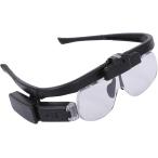拡大鏡 メガネ 4倍 2倍 メガネ型 跳ね上げ式 ライト付き 調整機能付き 眼鏡ルーペ ライト付きルーペ (ブラック, 中)