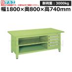 TRUSCO ( トラスコ中山 ) 重荷重作業台移動式(3000kg)TWC型 1800X750XH740 3段引出付 グリーン色 ( STWC-1800D3 (スチールテンバン) )