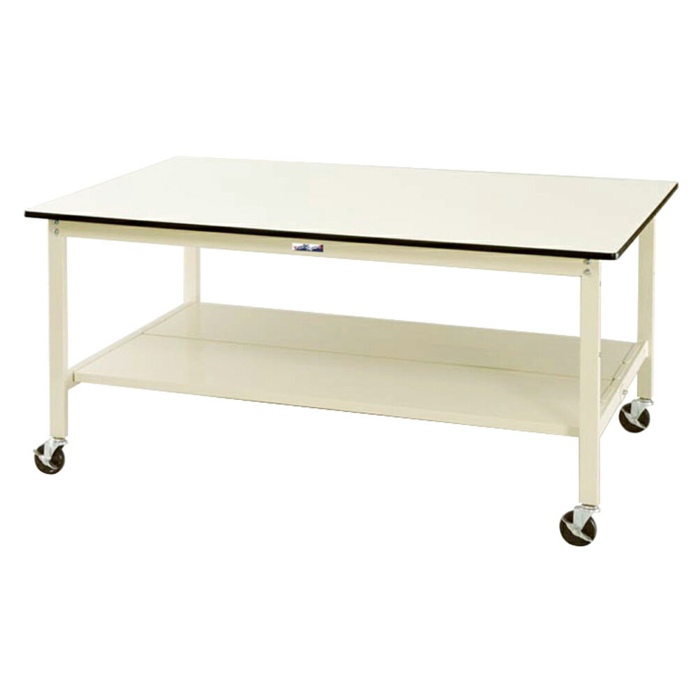ヤマテック 作業台 ワイドタイプ/ポリエステル天板【21mm】 [表示寸法:W1800×D1200×H856] 仕様:100φキャスター自在ストッパー付4ヶ グリーン購入法適合商品【お客様組立品】